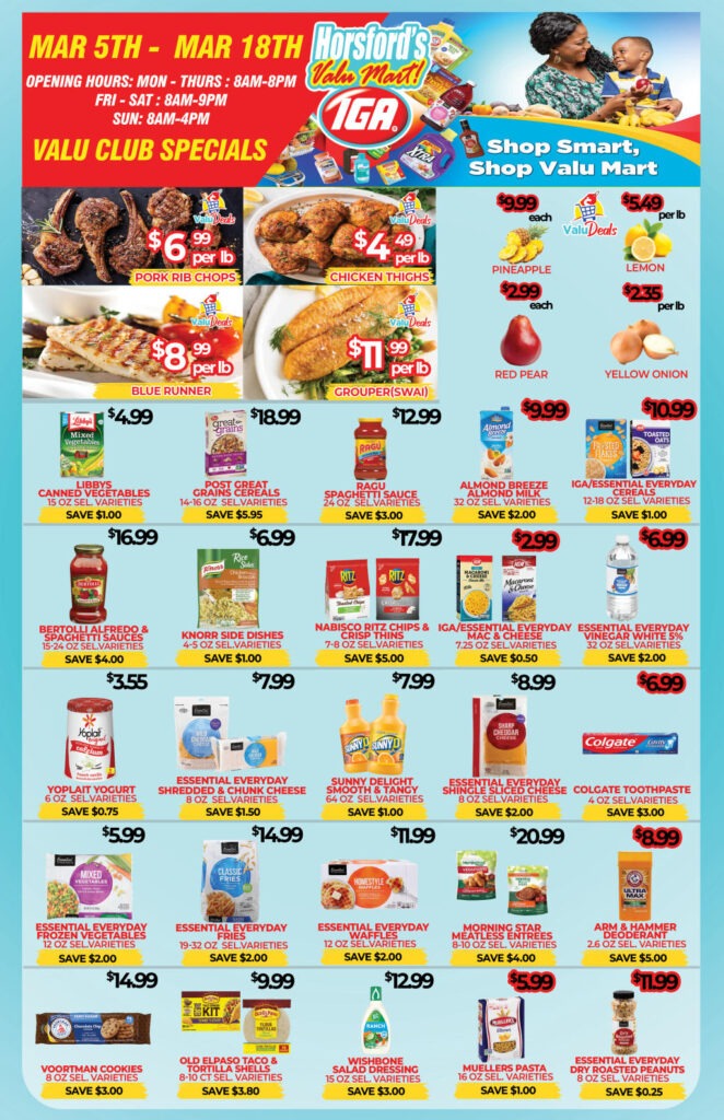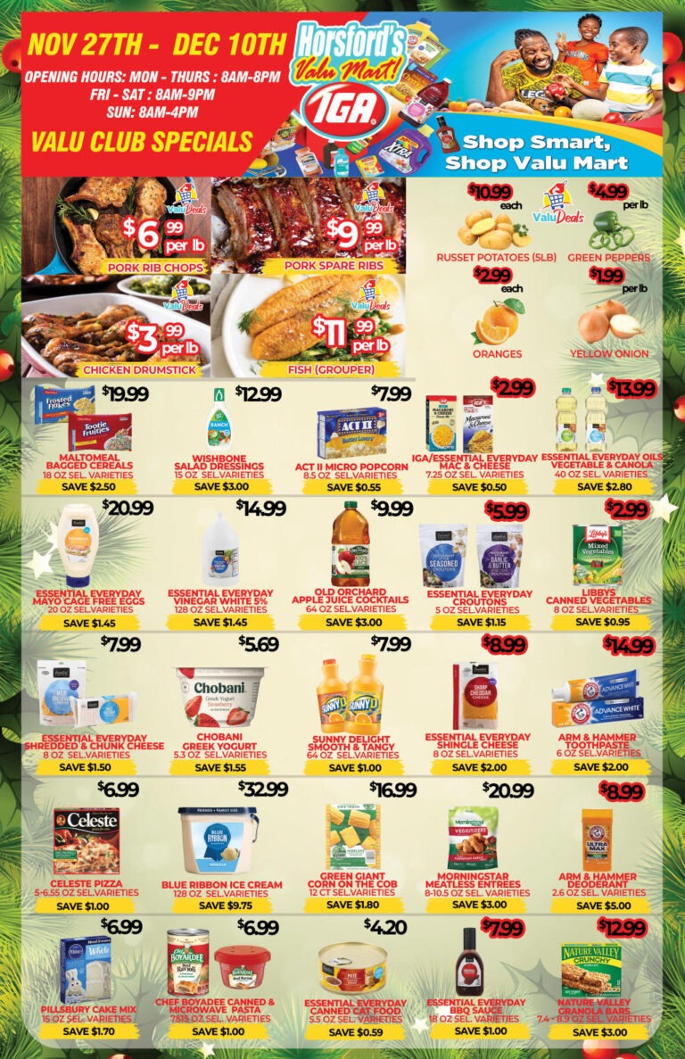 Head into Horsford’s Valu Mart now to check out our everyday low prices on top brand products, local produce and fresh baked goods.